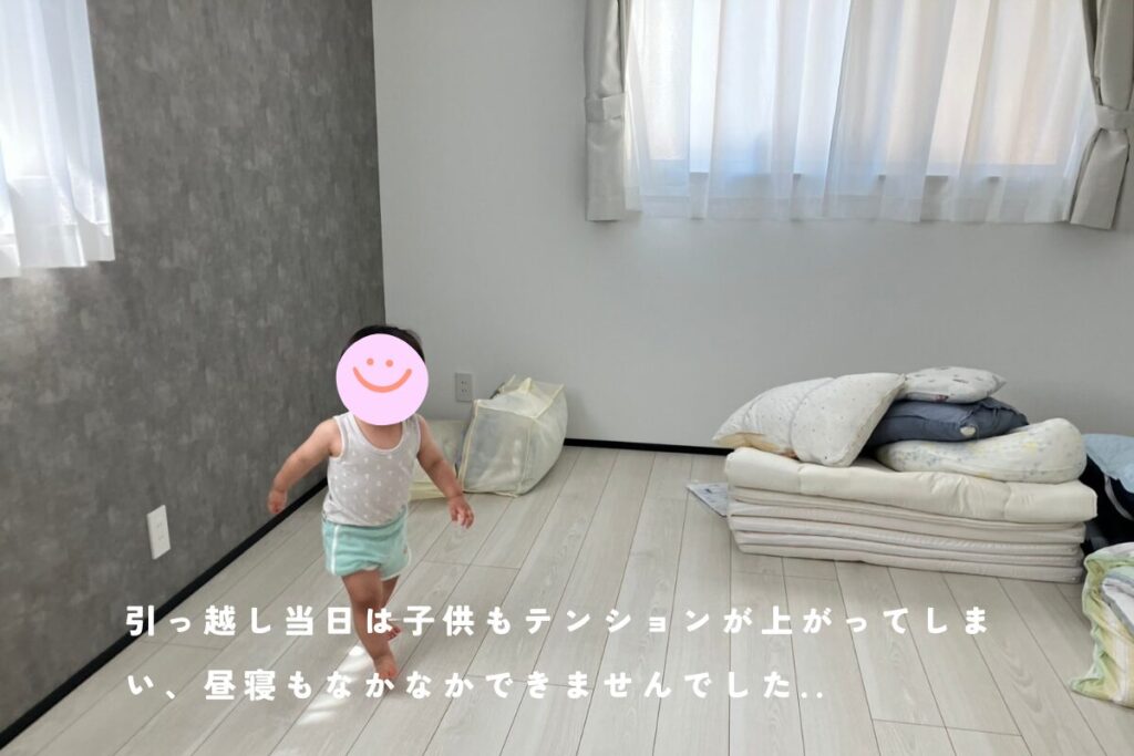 内見時にはダイニングテーブル、ソファがあったのですが、子どもが走り回るスペースとか、ごろっと床に寝れるところがありませんでした。